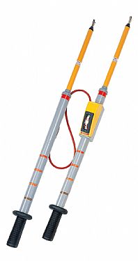 高電壓檢測桿是根據VDE0681•PART5的規範而設計的,具有判定相位和作接觸式量測電壓的功能。量測系統電壓可到達44KV。它的型號有五種:PC7K、PC11K、PC22K、PC33K和PC44K。 為顧及使用者的方便和維護人身安全,所使用的材質,重量輕而且堅固。PCxxK的測試端桿使用絕緣良好的玻璃纖維,手持端桿使用環氧樹脂,手把部份並被覆橡膠。前兩項材質經過台灣大電力研究試驗中心的耐壓測試合格。 高電壓檢測桿的儀表使用有顏色的刻度板,便於識讀。在使用時,不需要搭配其它的配件,也不必使用電池提供電源,採用接觸量測即可。持桿上並貼有標籤,供使用者識讀與提醒。 適用於室內和室外的乾燥處所,在雨天和潮濕的狀況下,請勿使用,以免危及人身安全。